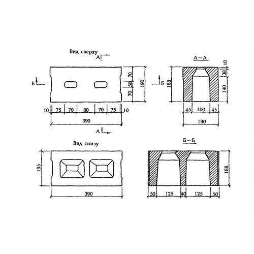 Камни для кладки стен КСР-ПР-ПС 39. Унифицированные изделия, имеющие прямоугольную форму с рядом конструктивных особенностей в виде выступов, углублений и отверстий.
