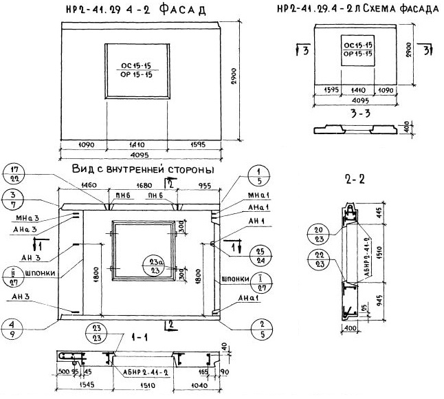 НР2-41.29.4-2 Наружная стеновая панель рядовая по Серии 1.132-1.