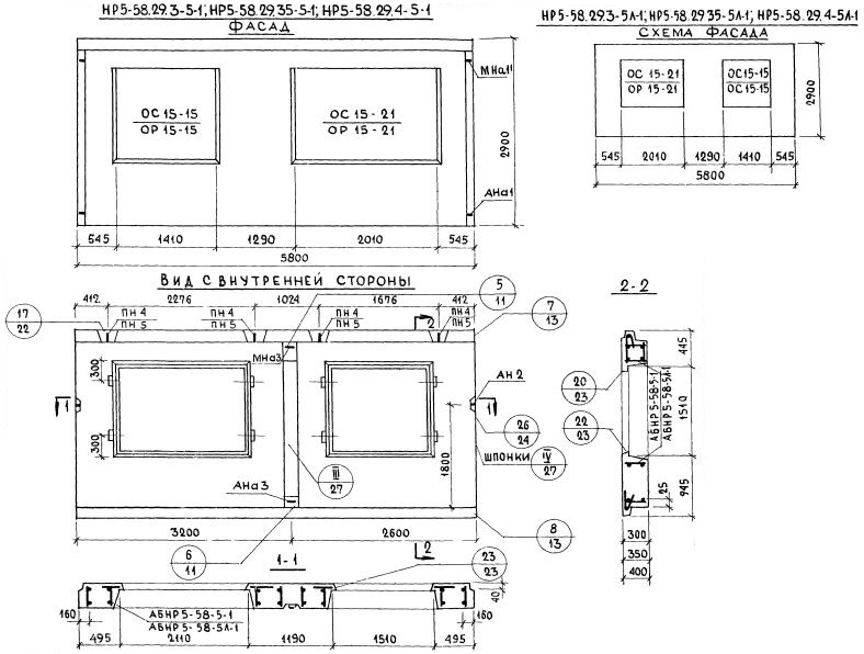 НР5-58.29.3-5-1   Наружная стеновая панель рядовая по Серии 1.132-1.