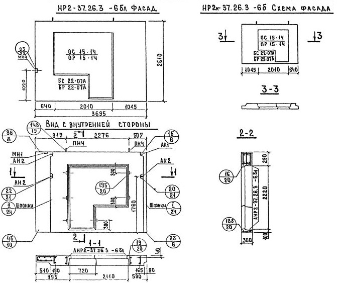 НР2-37.26.3-6бл Наружная стеновая панель рядовая по Серии 1.132-2.