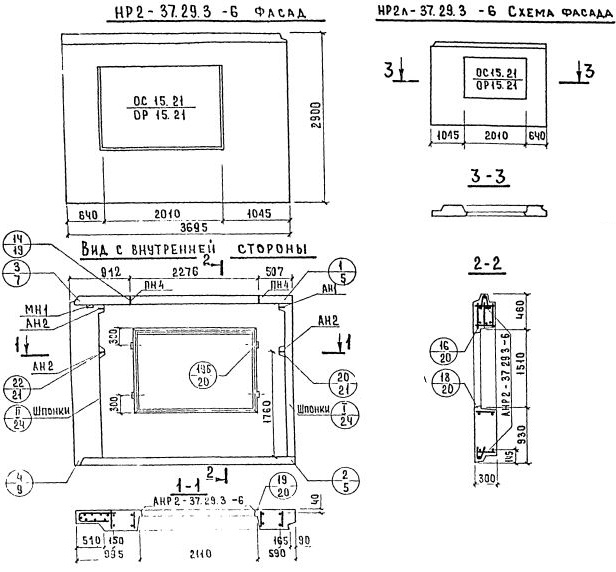 НР2-37.29.3-6 Наружная стеновая панель рядовая по Серии 1.132-2.