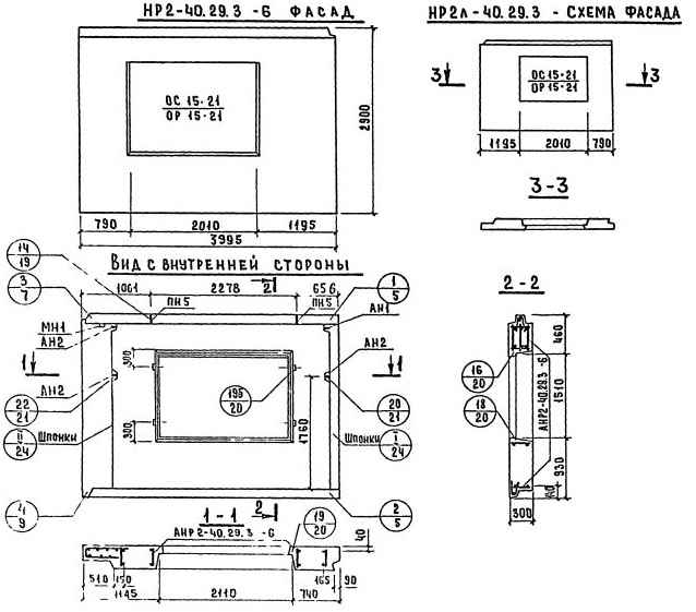 НР2-40.29.3-6 Наружная стеновая панель рядовая по Серии 1.132-2.