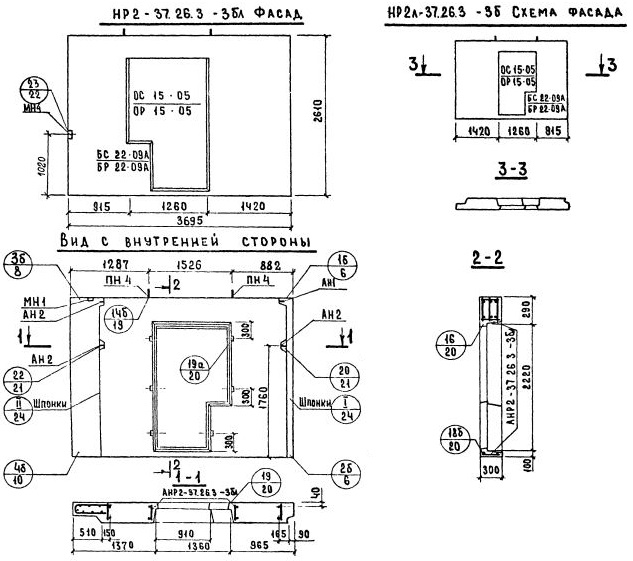 НР2л-37.26.3-3б Наружная стеновая панель рядовая по Серии 1.132-2.