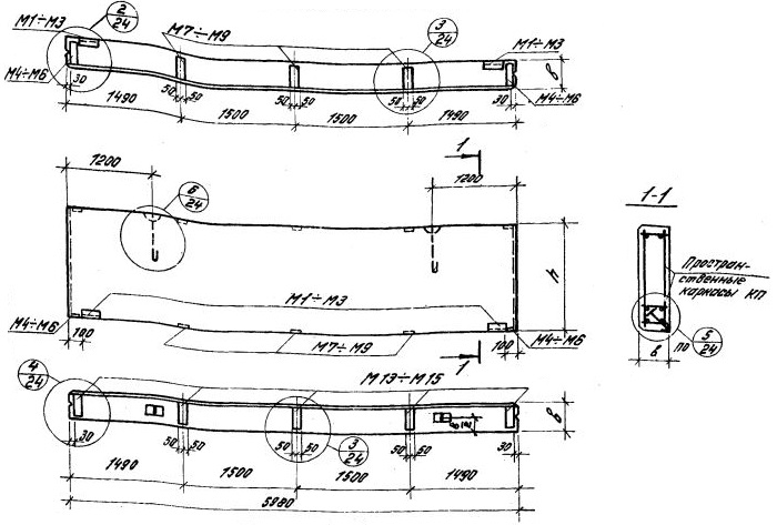 ПС 600.12.25-п-5 Подкарнизная панель-перемычка при ленточном остеклении и при простенках длиной 3 м.