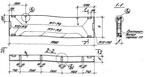 ПС 600.12.25-п-9 Парапетная панель-перемычка при простенках длиной 1,5м.