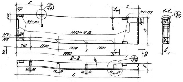 ПС 625.12.25-п-91 Парапетная панель-перемычка при простенках длиной 1,5м для углов и температурных швов.