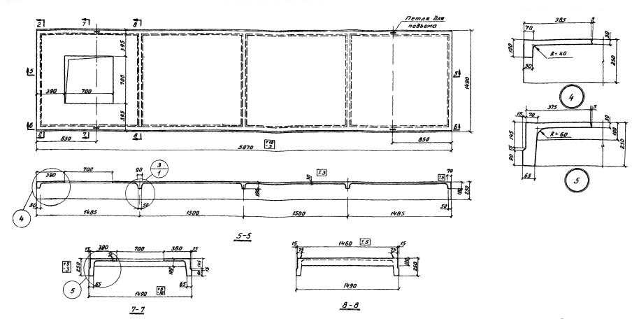 В соответствии с рабочими чертежами каждому железобетонному изделию присваиваются марки, которые состоят из буквенных и цифровых индексов. Маркировка плиты СПР 60-300-7 расшифровывается следующим образом: