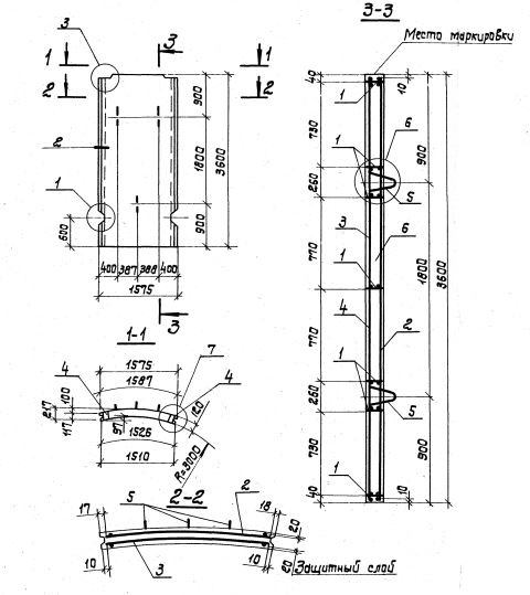 Панель стеновая для цилиндрических сооружений с радиусом кривизны 3 м; высотой 3,6 м; второго типа по нагрузке.