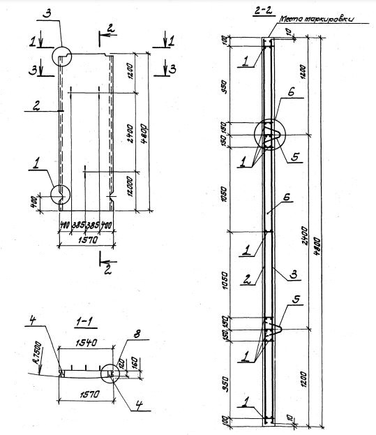 Панель стеновая для цилиндрических сооружений с радиусом кривизны 7,5 м; высотой 4,8 м; второго типа по нагрузке.